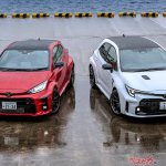 このモード変更によるハンドリングの違いを今回の試乗で判別はできなかったが、GRカローラのホイールベース2640mmに対してGRヤリスは2560mmと短く、コーナリングでの動きは明らかにアジリティがあり押さえつけてドライブする感じ。GRカローラは直進性も高く、ちょっと乗せられている感じだ。