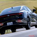 どちらも後輪操舵を行うDRSを搭載するが、後輪駆動に近い運転感覚を身につけているのはクラウン、優雅な身のこなしを見せるのはレクサスRXだ。RXはクラウンより上屋の動きは大きく感じられるが、思いのほか軽やかで、狙いどおりに走ってくれる。