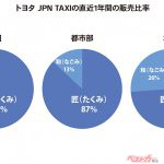 ここまで、JPNタクシーのグレード匠と和の違いを紹介してきたが、この違いを理解すると街中で見かけるJPN TAXIは匠の方が多いと思った人もいるのではないだろうか? 実際の直近1年間の販売比率は以下の通りだ。