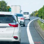 走行中、早めに前の車に近づいていることに気がついた場合は、アクセルを少しずつ戻し、エンジンブレーキを使って緩やかに速度を落とし、近づきすぎないようにします。