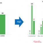 このテストでも、飲酒した翌朝は見落としや反応できないミスが、飲酒前に比べて多くなることが分かった。回数的には、飲酒前8回だったミスが飲酒直後は13回に増え、翌朝も10回と高止まりする結果だ。