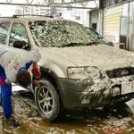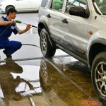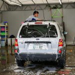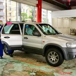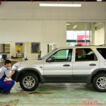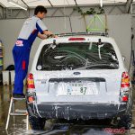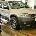今回、作業をお願いしたのはKeePer技研キーパーラボ事業部の小暮義久マネージャー。まずはエスケープの洗車からスタートしたのだが、これはボディコーティングと同じく、車体の汚れなどを落とすことで施工の効果を効果的に持続するためとのこと。
