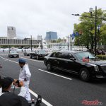 総理専用車には青色の識別灯が車体の前後に備わっているが、今回前面グリル内に装着された点灯式の青灯の上部に、さらに点滅式の青灯を装備していた。導入当初はなかったと思われる装備だけに、謎が深まる架装となった。また、他国と違って国旗を掲出せずに走行していたため、総理が通過したとわからず、「岸田さんはいつ通るの」と警察官に聞く光景も何度か見られた。