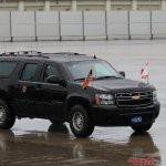今回のサミットでバイデン大統領は米海兵隊岩国基地に到着、そこから専用ヘリ「マリーンワン(VH-3D)」に搭乗して広島へリポートに到着、そして大統領専用車のキャデラック、通称「ビースト」に乗り込み行先地へ向かった。車列は例によって日米警護車両の共演となる。シークレットサービスが乗車するサバーバンの警護車や、電波妨害を行う通称ECM車と呼ばれるサバーバン、生化学物質等の検知や防護、緊急医療・救出活動などを行う通称HAMMERチームのフォードF550の黒い救急車。WHCAのフォードF350ロードランナーなど、大規模な車列で構成されていた。