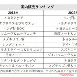 ホンダも2013年は2位だったが、2022年は4位まで下がった。近年の日産とホンダは海外指向を強め、国内販売の順位を下げている。