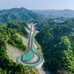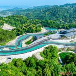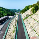 山岳コースだけに凄いのは勾配で、上り最大20%、下り最大16%だ。「峠道のよう」と形容されるが、勾配がきついことで有名な箱根ターンパイクでも、平均勾配7%、最大10%に過ぎない。上りはともかく、下り勾配16%を全開で加速するのは、猛烈に恐ろしいのではないだろうか?