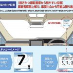 車検ステッカーはこれまで、フロントガラスの中央付近に貼られるのが一般的で、助手席側隅などに貼られることもあった。