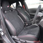 操縦性はシャープというよりも正確。装着するタイヤがグリップのいいミシュランパイロットスポーツCup2の245/40R18ということもあり、タイヤが温まるまではダンパーの効きが勝った、ハンドル操作にノーズの動きが少し遅れるような動きが出る。