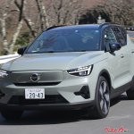 ガソリンエンジンモデルが先に登場していたミッドサイズSUVのXC40のBEVモデル。TWIN MOTORの車名が示すように、前後2モーターを搭載するAWDが今回の試乗車。ただし、シングルモーター仕様も設定されており、2024年モデルは前輪駆動から後輪駆動に変更され、RRに進化した点は高く評価。