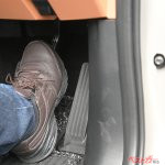 駐車料金の支払い程度に体を捩り、ブレーキペダルの中心より少し右側を急ブレーキを想定してブレーキペダルを強く踏んだ時、靴の右側がアクセルペダルと共踏みしないか確認して下さい。