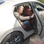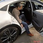 後席の乗降性はいいですね。ドア開口部の足元は広く、足の通過性がいい。シル段差も深くないため、降車時の足の通過性も問題ありません。頭の通過性も良好です。