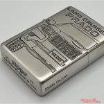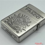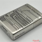 今回フェイスが手がけたのは、「銀サテン古美両面エッチング」という手法で、ランクルの車名とフロントマスクを刻み込んだZIPPOライター。トヨタのオフィシャルライセンスも取得した公式アイテムだ。