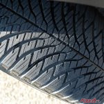 フィーリングとしては「硬いゴム×Vシェイプパターンがスパイク効果で高い剪断グリップを発揮する」ような印象でした。しかも、それが通常のセオリーとは異なり、硬圧雪やアイス路面でもいいのです。舗装路面でもこれまたいい。
