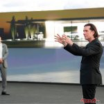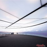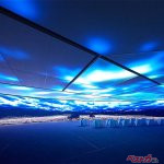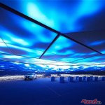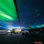 床から天井まで届くアーチ型のスクリーンの左右幅は40mくらいあるのではなかろうか。ソニー製のクリスタルLEDという4Kパネルを6枚繋げているので総解像度は24Kだ。天井にはLED照明が埋め込まれ、早朝や昼間、夕暮れといった光の加減を再現できる。7.1chという音響システムまで完備している。