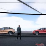開発の初期段階でまだ現車がない場合でも大丈夫。高精細な車両のCGモデルを風景の中に合成し、スクリーンに実車サイズで表示できるのだ。リアルタイムでぐりぐりと車体を動かしたり、ボディに風景を写り込ませたりできるので、バーチャルワールドでの車両評価が可能になる。