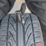 この状態でタイヤを回すと、タイヤ内面はパンク修理剤で覆われ、トレッド面(地面との接地面)のパンク箇所の穴を塞いでくれる。しかし、縁石などに擦ってタイヤのサイドウォール(側面)にキズが付いてパンクしたタイヤは、この方法では修理できない。
