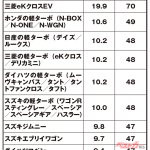 N-BOXはEVの2台を除けば偏差値76となるが、EVのトルクが凄すぎて加えると平均値以下