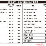 ミドル&ラージSUV 最大トルク偏差値(平均:37.7/標準偏差:10.0)