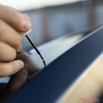 続いて露出したボディの金属表面をコンパウンドで磨き、タッチペイントなどでボディと同じ色に塗装する。カラーペイントの前にサビ止めペイントを塗っておけばなおよい。