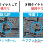 夏タイヤから交換する前にスタッドレスタイヤが本来の性能を発揮できる状況にあるのか調べる必要がある。プラットフォームと呼ばれる残り溝が50%になった際にトレッド表面に現われるサインが出ると、スタッドレスタイヤとしては使用できることができなくなるので注意が必要だ。