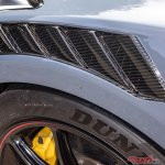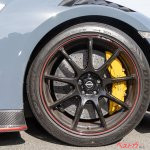ブレンボと共同開発されたカーボンセラミックブレーキシステムは強力無比な利き味。イエローのブレンボ製モノブロックキャリパーが挑発してくるぜ!
