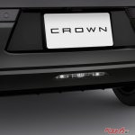 新型クラウンスポーツのリアフォグランプ。寒冷地仕様を選ぶと付いてくる。最近の傾向としてなるべく後続車が眩しくならないようにバックランプ内ではなく、バンパー下などにリアフォグランプを点けるケースが多くなってきた