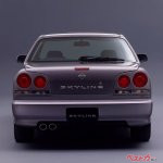 R34スカイラインは1998年5月に登場。角が丸められたR33型のデザインとは対照的に、R34型では角を強めたボクシーなデザインへと一新された。