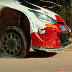 ちなみにこの映像は、勝田貴元選手が駆るGRヤリスの隣を、もう1台のGRヤリスが並走して収録された。その並走車のドライバーを務めたのは、貴元選手の父である勝田範彦選手。収録車にギリギリまで接近した迫真の映像は、親子だからこそ撮影できたミラクルショットなのかもしれない。