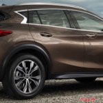 そのパートナーシップによって生まれたインフィニティQX30は、プレミアムアクティブクロスオーバーとして、2015年のジュネーブ国際モーターショーで初披露、同年にロサンゼルスモーターショーと広州モーターショーでも公開され、2016年より欧州、米国、中国で販売された。リフトアップしていないQ30というCセグメントのコンパクトカーもあったが(メルセデスベンツAクラスと同サイズ)、当時はオーソドックスなコンパクトカーよりも「クロスオーバー」というキーワードが目新しいこともあり、QX30のほうをより推していたように思う。