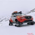 先ごろ開かれた東京オートサロンでも、クローラーを装着した車両を何台か見かけた。「でもクローラーが映えるのはやっぱし現場だよなあ」などと思っていたら、なんと日産が、イタリアのスキー場にエクストレイルのクローラー仕様を展示するというではないか!