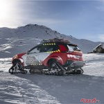 マウンテンレスキューの外観では、もちろんクローラーが主役。クローラー自体は米国MATTRACKS社の軽量SUV向け「EZ HD」を装着しているとみた。