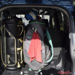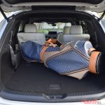 CX-8の荷室幅は1480mmあり、3列目シート可倒時の荷室容量は563L、荷室長も1350mm(2列目シート最前端の位置で2列目シートバックまで)に拡大可能。大型ツアーバッグも4本収納できる広大なスペースが生まれる(Boseのオーディオ搭載なしの場合)。