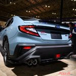 エクステリアでは、通常ディーラーオプションで設定される小型トランクスポイラーをはじめ、フロントグリル、ドアミラーカバー、シャークフィンルーフアンテナにクリスタルブラックシリカ塗装を施し、STI製BBS19インチフレキシブルパフォーマンスホイールを採用。