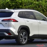 クラウンシリーズ内で最も居住性が高く、ラゲッジ容量が大きいのが特色のモデル(5m近い全長ですものね)。たんと積んで快適に移動できる、皆が羨むクルマになることほぼ確定と言っていいが……このクラウンエステートとカローラクロス、真横のフォルムだけではなく、斜め後ろから見た姿も似ているッ! それが上と下の写真だ。