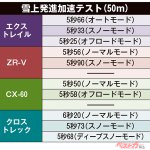 クロストレックはエンジンパワーが比較的おとなしいこともあって、発進加速で大きくホイールスピンすることもなく、安心してアクセルを踏んでいけます」という評価だった。