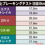 「特に安心感が高いのはエクストレイル。ABSの制御が緻密で、空走感がほぼなく、しっかりと減速します。対してCX-60はABSが作動すると減速感がやや抜ける場面があります。車重の重さも影響していると思いますが、タイヤの接地面が活かし切れていないようにも感じます」という評価。