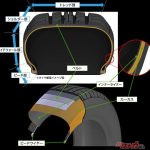 そこでタイヤメーカーは考えた。カーカスを進行方向に対して垂直に貼れば、遠心力に強いタイヤが作れる。しかも垂直に貼ったカーカスはトレッド部分とサイドウォール部分がはっきりするので、トレッド面は固く、サイドウォール部分はしなやかに特性を作り分けることもできるわけだ。