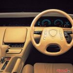 インテリアは今でも通用しそうなほど秀逸。フラッグシップ・クーペにふさわしい高級感たっぷりの本革やウッドパネルが多用され、「20BタイプS CCS」には、タッチパネル式マルチインフォメーションディスプレイの元祖ともいえる世界初のGPSカーナビを搭載。とはいえ、当時は利用できる衛星の数が少なかったため、東名高速を走っているのに太平洋を走行中と表示されることもあったとか。