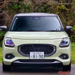 新型スイフトで好みが分かれるのがフロントマスク。特にメッキのグリルはスポーティに乗りたいオーナーにとっては微妙な高級感かも。そこでオプションのフロントグリルガーニッシュ(スーパーブラック)を選んでおこう。こちら2万6400円。
