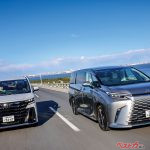 カーブを曲がる時の挙動はヴェルファイアが軽快だが、レクサス LMもショックアブソーバーの減衰力を電子制御するAVSなどが備わり、ボディの傾き方が穏やかに進んで安定性に不満はない。乗り心地は少し硬いが、ヴェルファイアに比べると大幅に快適でノイズも小さい。