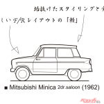 翌1969年7月に二代目にあたるA100系「ミニカ70」にチェンジするまでに、16万台あまりを生産、のちの三菱「軽」の基礎をつくった。
