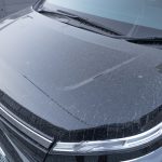 この凍結防止剤や融雪剤がクルマに付着した状態で放置しておくと水シミになりやすく、特に濃色車では非常に目立つようになる。また、これらは塩化物のため、鉄粉と反応するとサビの進行を一気に促進させる。