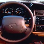 一見すると当時のトヨタセダンらしい木目調パネル満載の内装なのだが、メーターから助手席にかけてインパネ上部がえぐられてたデザインとなっているのだ。