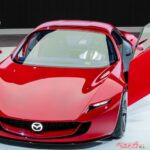また、FD型RX-7以来となるリトラクタブルヘッドライトを採用するなど、マツダのスポーツカーファンならずとも心が躍る演出も盛り込まれている。ただ、ドアが垂直に跳ね上がるシザーズドアはモーターショー向けの特別加飾と思われ、市販型に投入される可能性はまずないだろう。