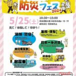 おもな出店:消防・警察ブース、水没車展示ブース、起震車ブースのほか、段ボール迷路や飲食ブースなども出店、家族みんなで楽しみながら防災の知識が学べるぞ!