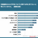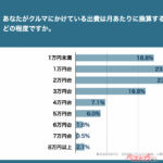 こうした傾向は「クルマ」についても同様で、仮に可処分所得が増えたとしても、「クルマにかける出費を前年から変更しない」がトップとなった。なお、普段クルマにかけている出費の実感は「月2万円台」が最も多く、個人収入の平均が400万円台とされるなかでこうしたボリュームは小さくないことから、多くの人たちの間で「クルマにかける出費を今よりさらに増やそう」というモチベーションは高まっていない現状が垣間見えた。