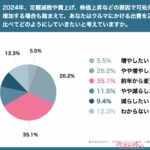 まず、所得から税金や社会保険料などを差し引き、自分の意思で自由に使える「可処分所得」が2024年に「増加しそう」と回答したのは約4割と、「減少しそう」の2割弱を上回ったのに加えて、過去5年を振り返った場合にも、「増加した」が「減少した」を上回り、働く世代の一定の割合が自らの可処分所得についてポジティブに受け止めていることがわかった。