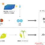 冒頭でも触れたが、合成燃料もバイオ燃料も燃やせばCO2が出る。しかし合成燃料の場合は放出されたCO2の再利用だし、バイオ燃料も原材料の植物が大気から吸収したCO2だから、トータルではCO2が増えない点が素晴らしい。
