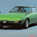 マツダ サバンナクーペの後継として、1978年に登場したマツダ初代RX-7(型式名SA22C)。オイルショックの嵐が吹き荒れ、スポーツカーは絶滅するんじゃないかと言われた当時の日本にあって、このクルマの登場は驚愕であり希望でもあった。
