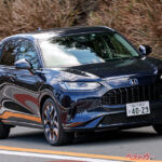 興味深いのが後輪の駆動システム。RAV4とエクストレイルは独立したモーターで駆動する。出力を見ると54ps/136ps。エクストレイルのほうがパワフルだから、後輪駆動車のような挙動も可能。ZR-Vのみプロペラシャフトで後輪に駆動力を伝えるため、前後の駆動力配分は50対50になる。